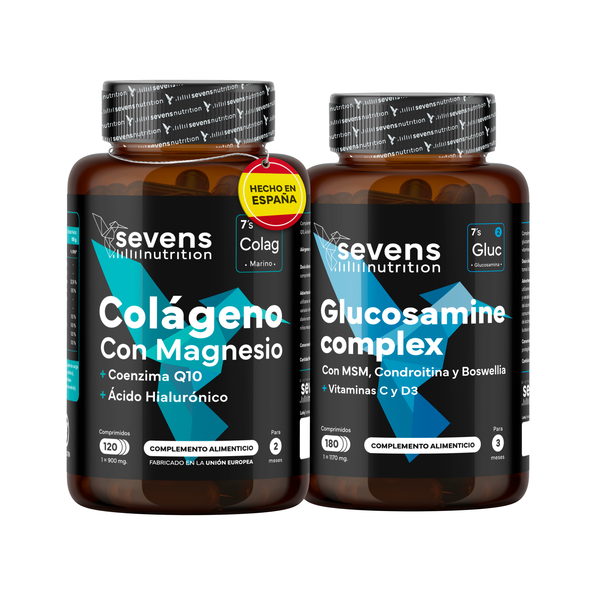 Este duplo combina Colágeno Marino Sevens y Glucosamina Sevens.