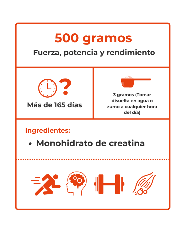 Aumenta las reservas de energía (ATP) en el músculo, permitiendo entrenar con más intensidad y acortar los tiempos de recuperación.
