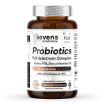 Probiotics Full Spectrum Complex contiene 30 cepas probióticas vivas, con más de 50 mil millones de UFC por dosis, cápsulas de liberación retardada y un plus de vitamina D y zinc para reforzar la inmunidad.