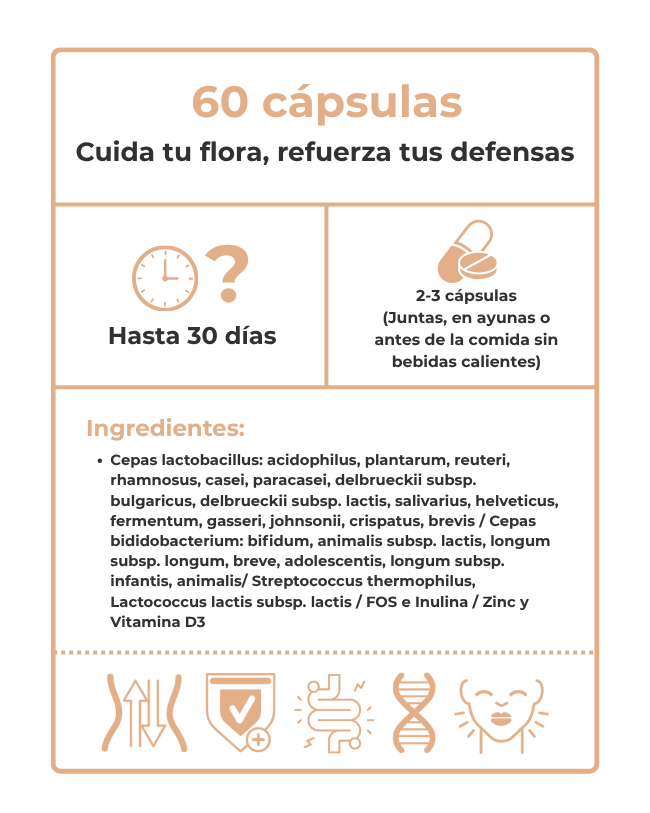 Si te interesa ir más allá de la superficie, aquí te contamos la parte más técnica: el equilibrio de la microbiota intestinal influye directamente en el sistema inmunitario, el metabolismo y el bienestar emocional. La combinación de Lactobacillus y Bifidobacterium en Probiotics Full Sevens cubre todo el tracto digestivo, mejorando la digestión, reduciendo la inflamación intestinal y modulando la respuesta inmune. El zinc y la vitamina D3 actúan como cofactores esenciales para mantener la integridad intestinal y la defensa celular. Una lectura para quienes disfrutan entendiendo el porqué de lo que toman.