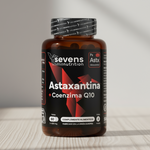 Astaxantina Sevens utiliza AstaPure®, una astaxantina natural de alta pureza, combinada con coenzima Q10 y aceite de oliva virgen extra, creando una sinergia antioxidante única con respaldo científico.